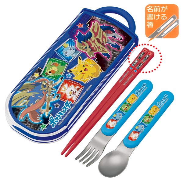トリオセット スライド式 箸 スプーン フォーク ポケットモンスター ソード シールド 子供 ( カトラリー キャラクター 幼稚園 保育園 食洗機対応 子供用 スライド 食洗機OK お箸 キッズ ポケモン )