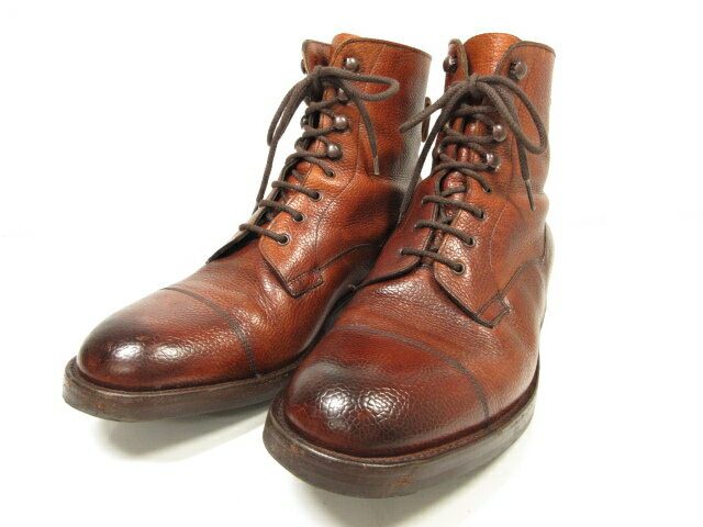 美品 【エドワードグリーン EDWARD GREEN】 旧ロゴ 型押しレザー レースアップブーツ (メンズ) ムラ感のあるブラウン UK7 F64 ◎2MZ5037◎ 【中古】