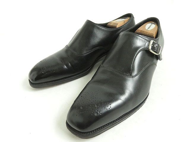 【中古】美品☆ラルフローレン パープルレーベル エドワードグリーン製 D888ラスト モンクストラップ メダリオン レザーシューズ ブラック 9 1/2 D