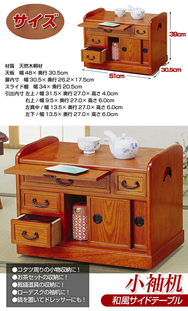 [ 送料無料 ] サイドテーブル 小袖机 袖机 木製 桐製 こたつ キャスター付き リビング サイドテーブル付き 引き出し 収納 ベッドサイドテーブル ■ 天然木桐材使用 和風サイドテーブル 小袖机